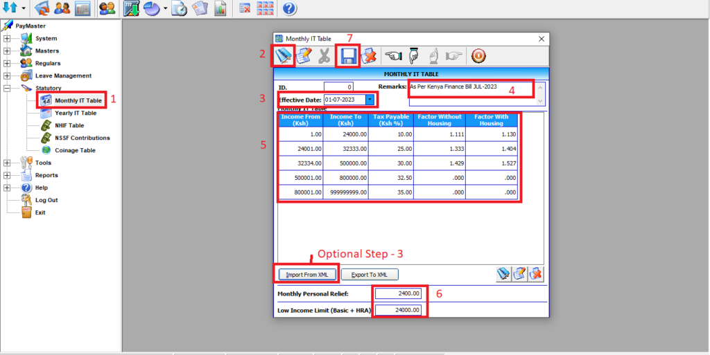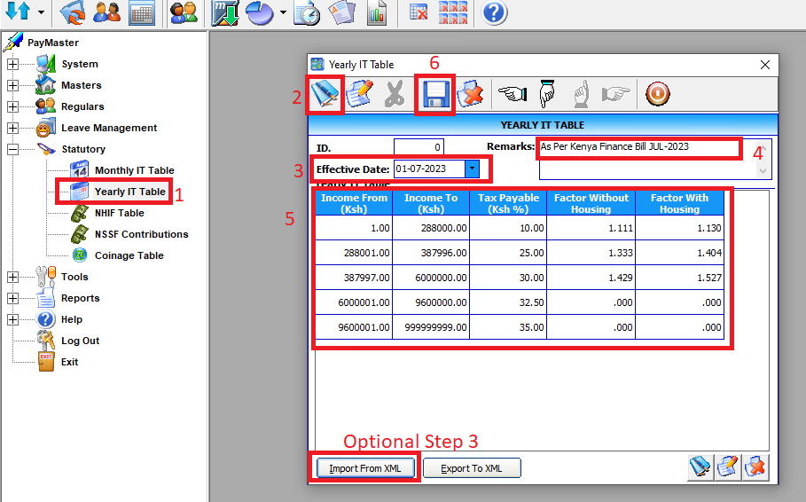 Note : You can even Import the Tax Table Directly via File distributed by Endeavour Africa Ltd. In this case Follow Step 1, 2 in Above screenshot. Then Proceed to Import From XML (Optional Step 3) & Click Save (Step 7)