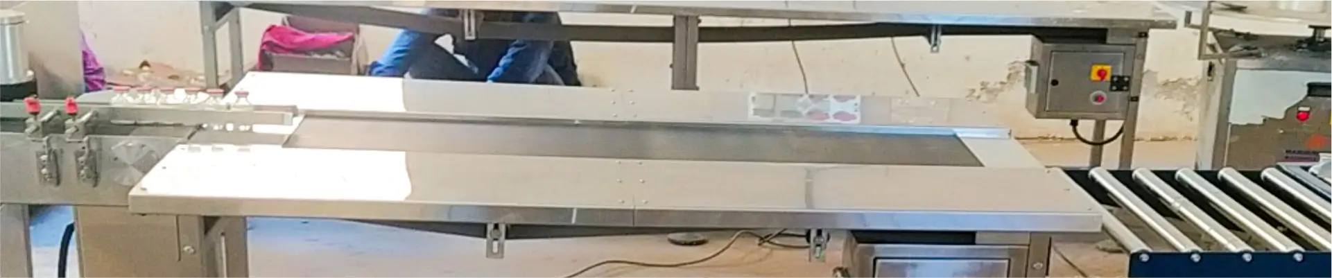 Adjust the angle at the initial part of the conveyor for specialized packing of bottles, jars, and pouches.