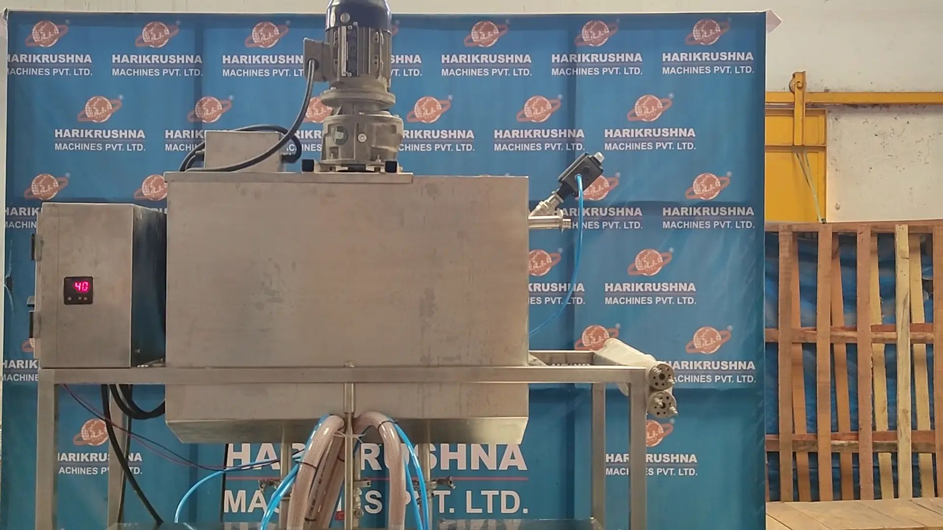 The Semi-Automatic Timer Filling Machine consists of the main structure of SS, product holders, 100 liters tank with a stirrer, level controller, filling pump, filling nozzle, auto & manual mode, pedal switch & AC drive.