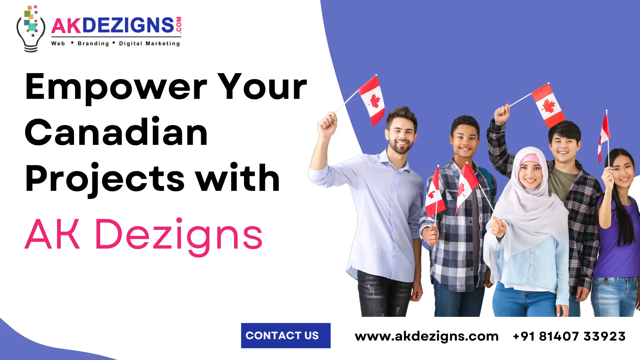Empower your Canadian project to thrive online. Partner with AK Dezigns today! Contact us for a free consultation and explore how our expertise can propel your project to success within the Canadian digital landscape. Let’s collaborate and unlock the boundless potential of your online presence in Canada!